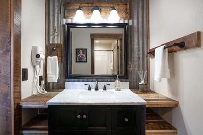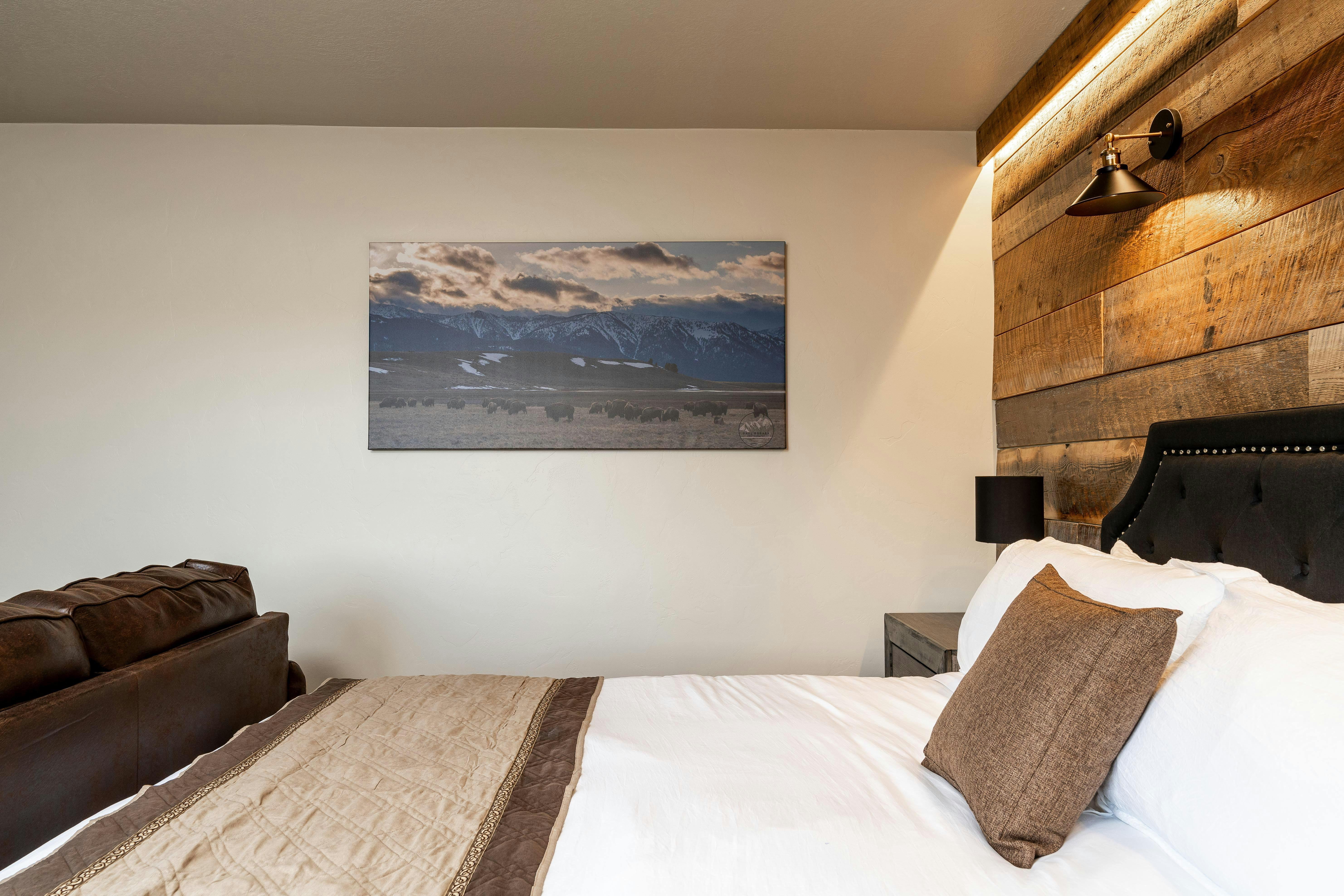 Stay comfortable in this charmingly rustic King Suite. Enjoy a spacious bathroom, a comfortable King-bed, and a Queen-sized sofa bed. Additional amenities include a mini fridge/freezer, a microwave, a Keurig coffee maker, 50 inch flat screen, and Netflix/streaming capabilities. Book a stay at our perfectly Montana inn you deserve it.