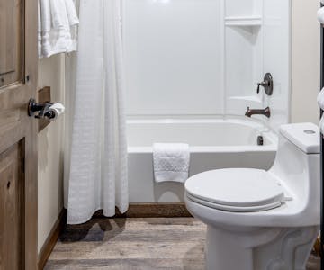 Stay warm and cozy in this charming King Suite. Enjoy a beautifully rustic bathroom, a nice king-sized bed, and a queen-sized sofa bed. Additional amenities include a mini fridge/freezer, a microwave, a Keurig coffee maker, 50 inch flat screen, and Netflix/streaming capabilities. Book a stay at our perfectly Montana inn you deserve it.